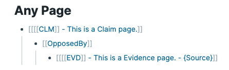 Indent a block underneath the claim block. And reference the page [[OpposedBy]]. We'll call this the connecting block.